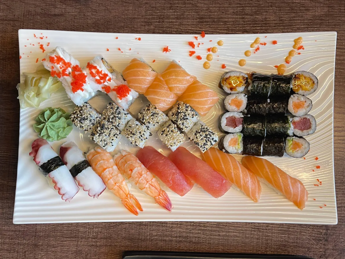 Wähle aus einer großen Vielfalt an Sushi-Rollen, Nigiri, warmen Gerichten der asiatischen Küche und köstlichen Vorspeisen.